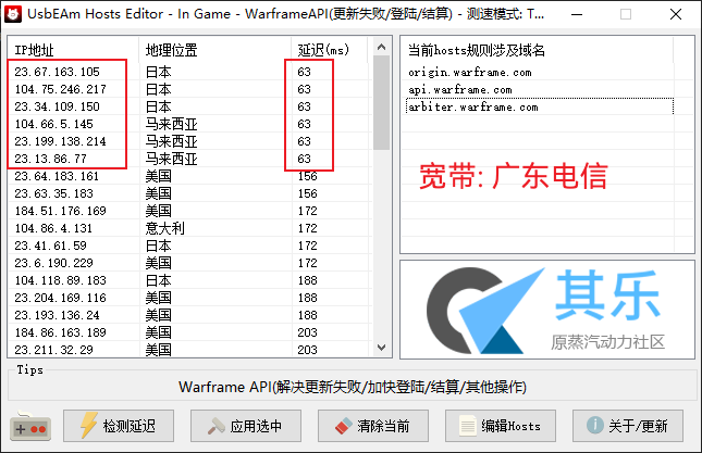 content.warframe.com 可能会被分配到 205.185.216.10 此IP国内几乎都会登录失败